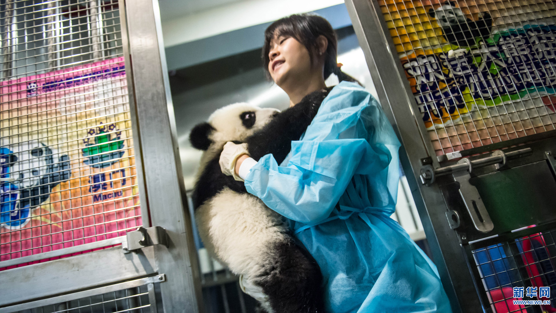 大陸中央政府贈澳門大熊貓『開開』『心心』的雙胞胎幼崽『健健』『康康』已半歲有餘,壯實活潑,一家四口預計可在春節期間一起與公眾見面。記者近日獨家探訪了澳門大熊貓家族。在『健健』『康康』兄弟倆專屬的遊樂場內,記者看到了好動的『健健』與弟弟扭作一團,而弟弟『康康』毫不示弱,找準機會就來個反撲。見慣此景的『奶爸』『奶媽』——大熊貓飼養員則在一旁笑而不語,眼裡充滿愛意。