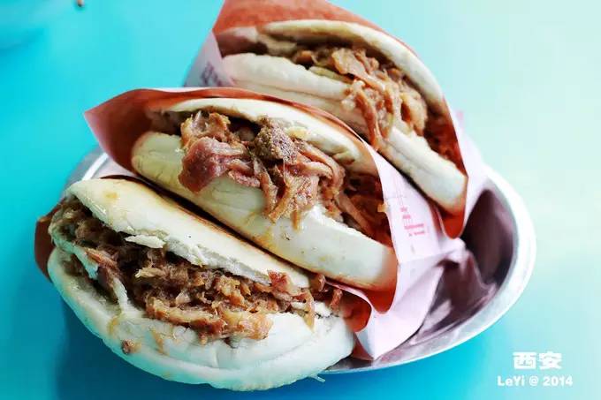 正宗的肉夾饃裡面是不放尖椒的,推薦【樊記臘汁肉夾饃(竹笆市店)】位址位於碑林區竹笆市街53號。
