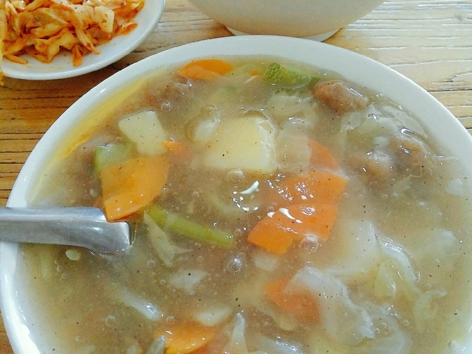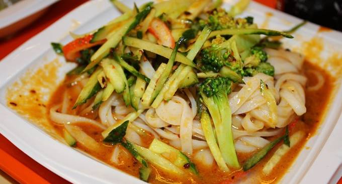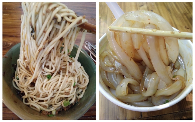 很軟很容易咬斷,沒有座位,需要捧著碗坐在路邊或者是站著吃,不太能吃辣的一定要告訴店員少放辣或者直接不放辣。