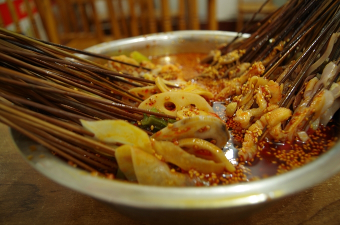 成都的缽缽雞也是神一般的存在,好吃不貴。比較推薦杜甫草堂附近的一家【樂山鮮知味缽缽雞】,兩個人50元(以人民幣計算,以下同)就吃的很飽。