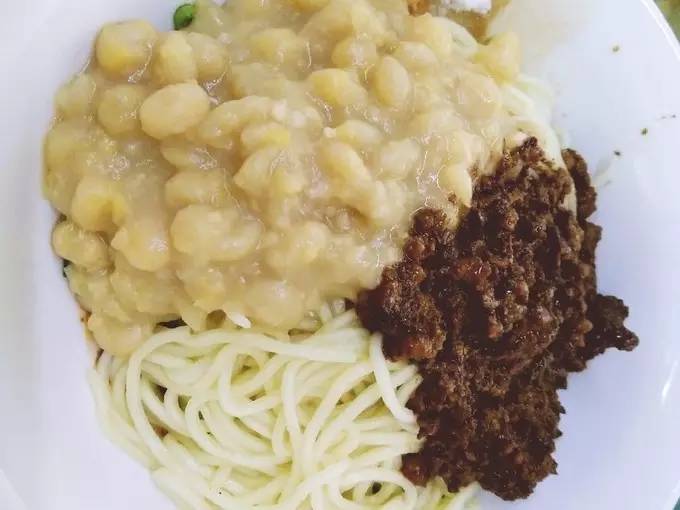 不太能吃辣的可以選擇豌雜麵,料會比重慶小面更豐富一些,放入了豌雜和牛肉醬,推薦【花市豌雜麵】,門口的牌子上寫著重慶小麵5強的招牌,有好幾家店。