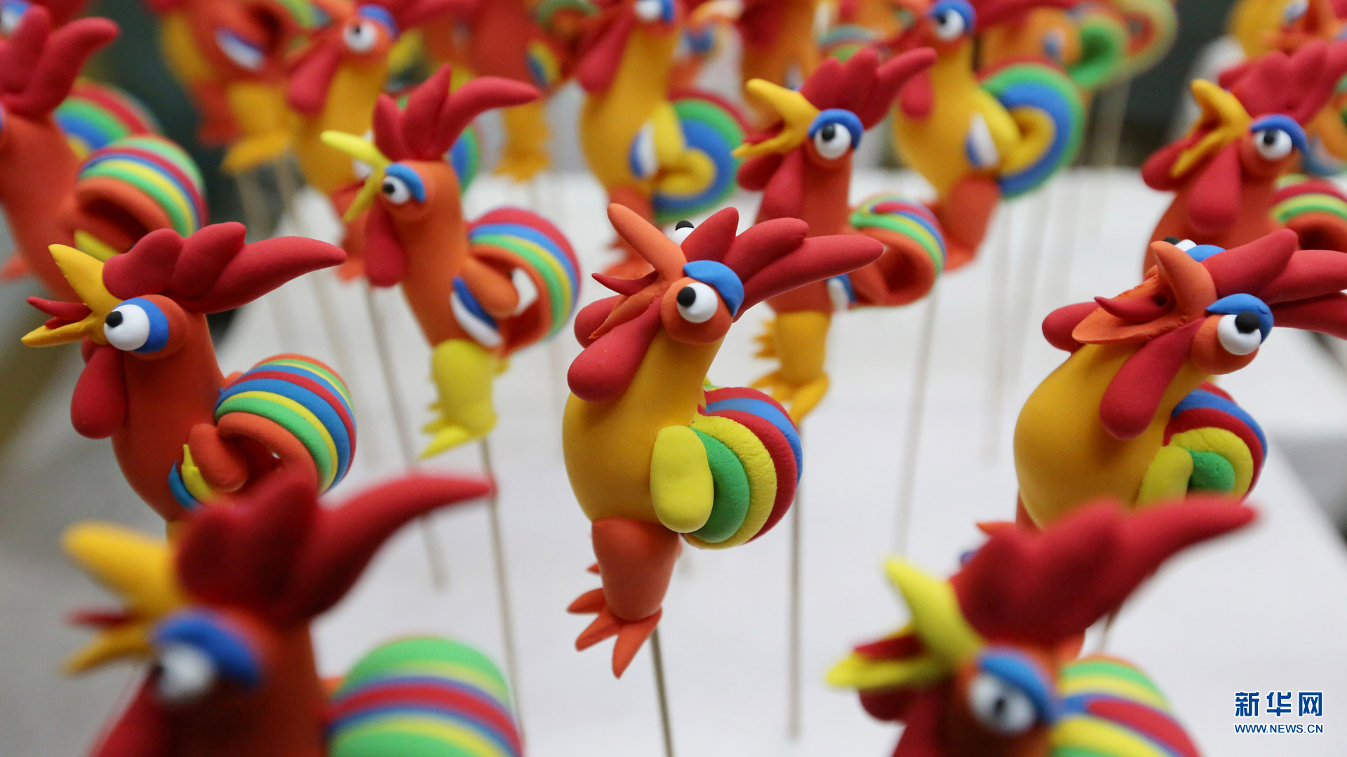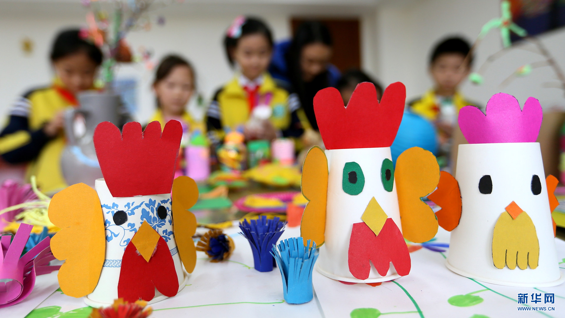 雞年春節臨近,山東青島通濟實驗學校舉行『秀才藝迎雞年』主題活動,該校手工、泥塑、書法、剪紙等十幾個課外社團的小學生精心創作了『金雞』題材的作品,迎接雞年新春的到來。