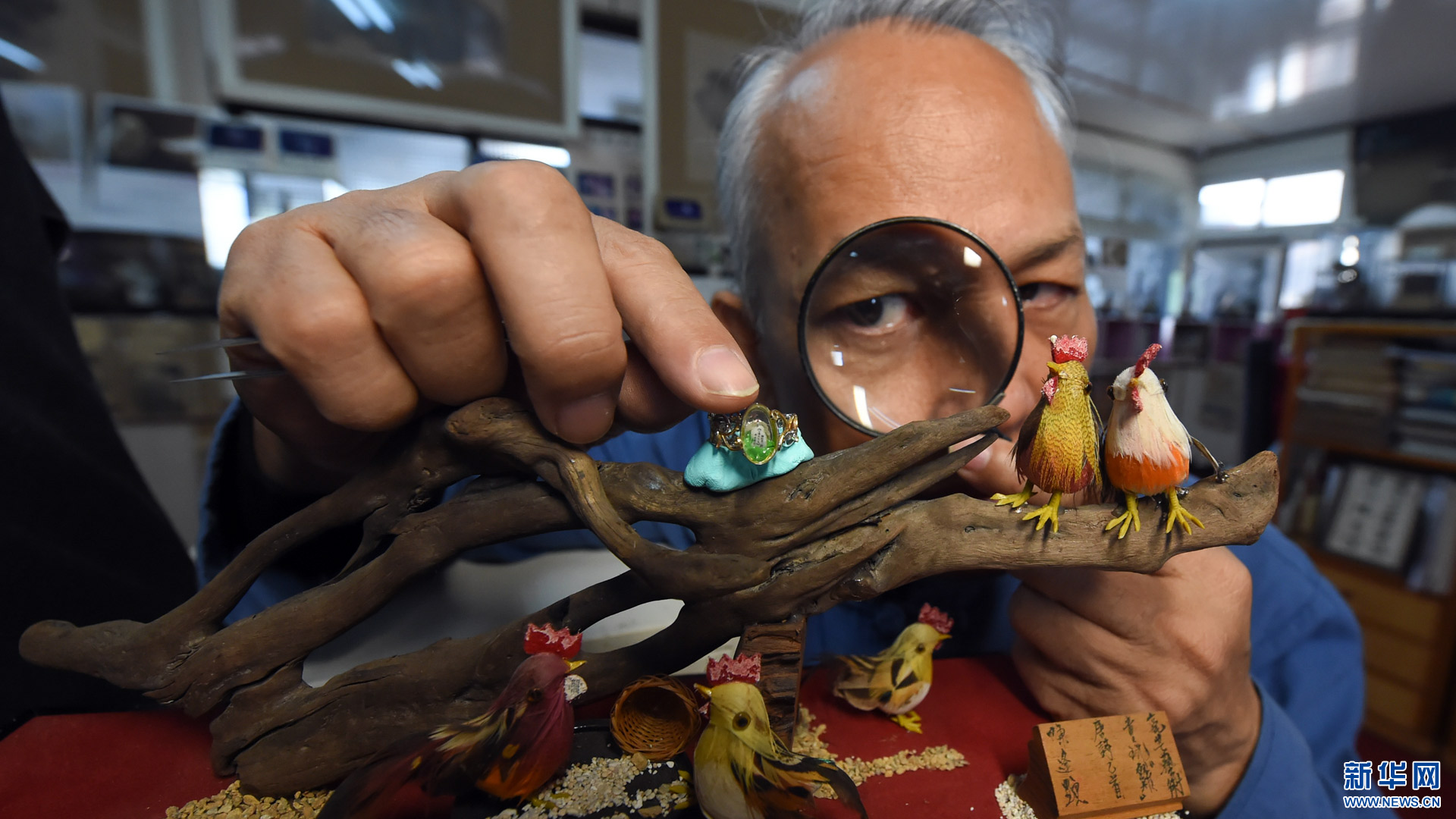 農曆雞年將至,山東省棗莊市市中區61歲的民間藝人闞宗勤創作出以雞為主題的麵塑作品『「百雞」迎雞年』,喜迎雞年的到來。