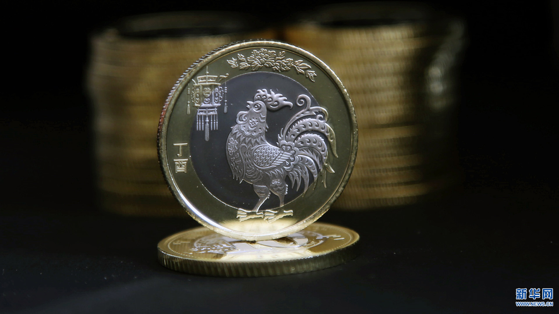 這是1月4日在江蘇省淮安市中國農業銀行一網點拍攝的雞年紀念幣。當日,由中國人民銀行發行的雞年紀念幣開始兌換,紀念幣材質為雙色銅合金,面額10元,發行數量5億枚。