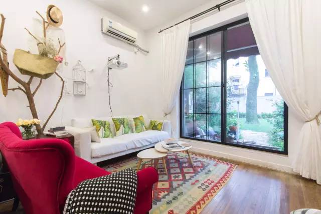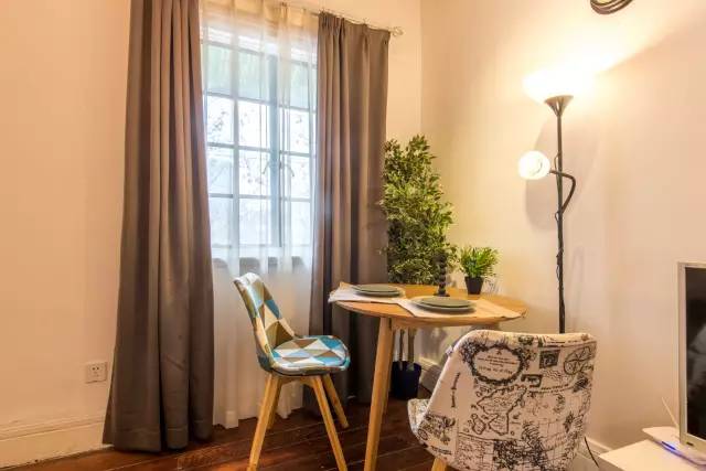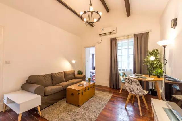 房子在武康路附近的餘慶路上,門前有一個綠植遍布的小院,足不出戶就能享受到大自然的清新。房間內部新舊傢俱搭配,設計得文藝自然,既有時間沉澱的美感,也不會感覺太壓抑。早晨你會被鳥聲叫醒,陽光透過落地窗灑滿房間,美好的一天就這麼開始了。