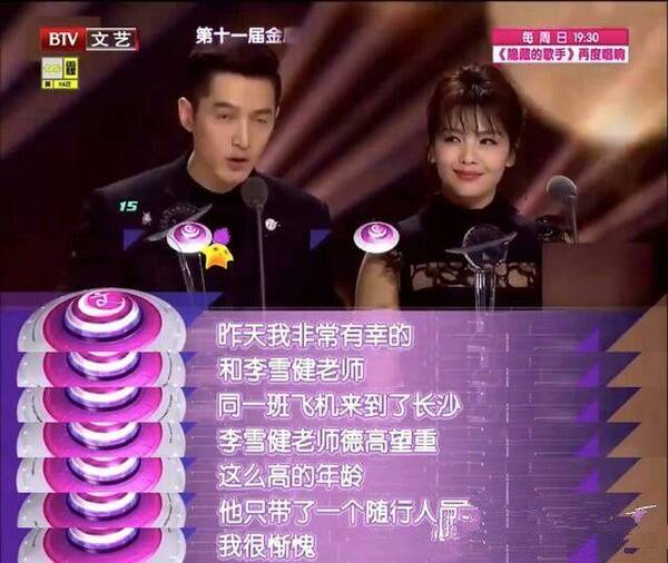 胡歌領過獎之後走到李雪健的面前彎下腰說了一句『受之有愧』,因為李雪健的一個細節深深打動了他。