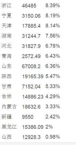在榜尾,名義增速位居後10位的省份全部位於北方,主要來自東北、華北、西北地區,有5個省份的名義增速低於5%,分別是山西、黑龍江、新疆、內蒙古和吉林。其中山西的名義增速僅為0.98%,黑龍江的名義增速也僅為2%。