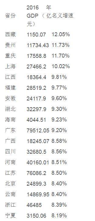 透過對於30個省份(遼寧資料不具同比性,故未納入統計)名義增速的統計發現,2016年,名義增速最高的3個省份為西藏、貴州和重慶,均超過11%,從地理位置上看,它們全部位居大陸的西南地區。