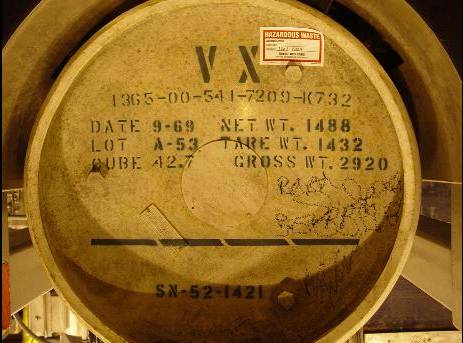1968年3月,一架美軍戰鬥機攜帶VX毒劑罐在猶他州某軍事試驗場執行任務,因為故障導致毒氣洩漏並擴散到附近的骷髏穀,6000隻羊因此死亡。考慮到毒劑殘留的影響,被污染地帶事發後很久才允許放牧。