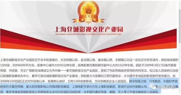 上海倉城影視文化產業園區官網截圖。
