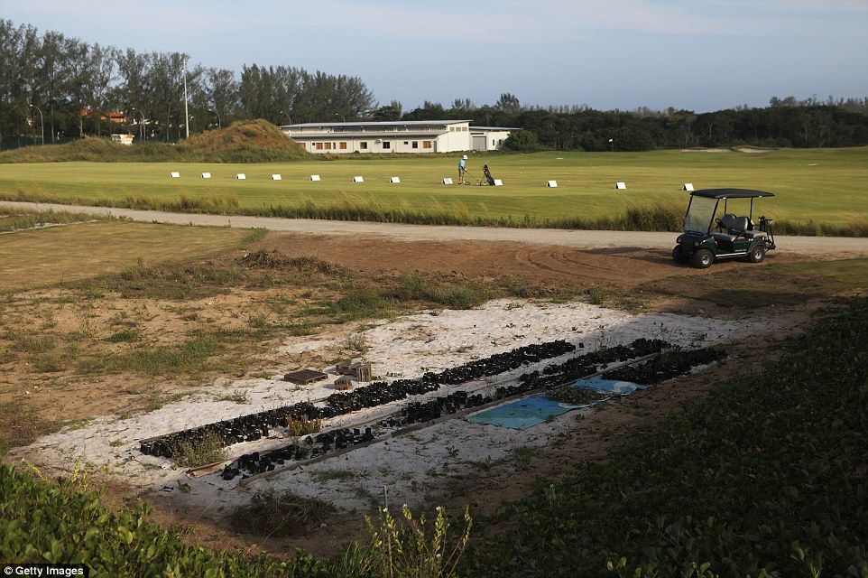 一位男子正在高爾夫球場練習,這裡曾經是奧運會的高爾夫球場,有著精美的草坪,現在卻雜草叢生。