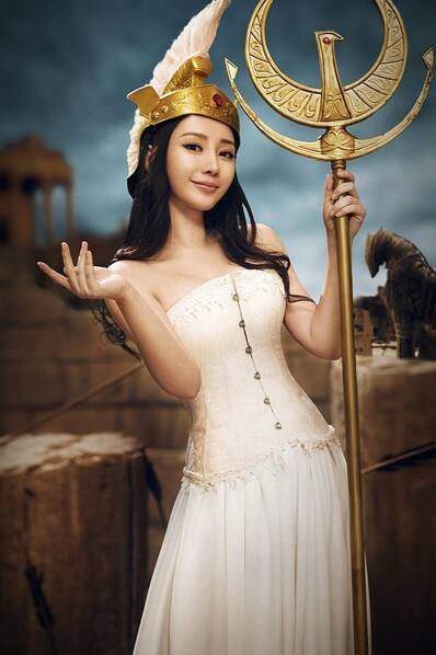 柳岩穿上盔甲,化身雅典娜。