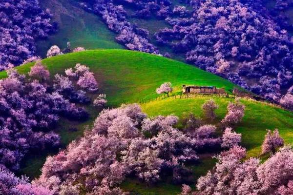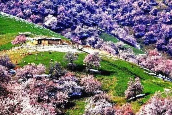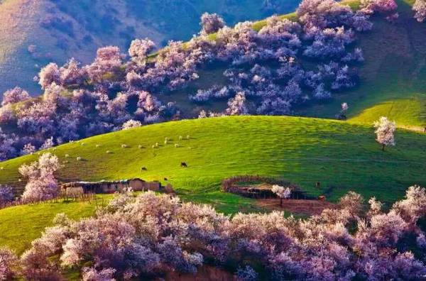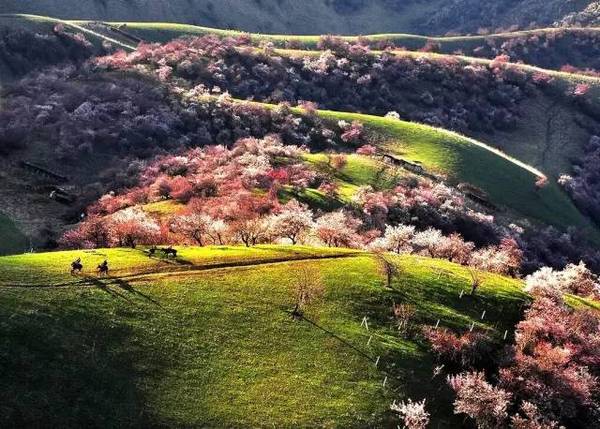 3月,一樹樹一叢叢的粉色杏花在春天初綠的山腰溝谷之間蔓延開來,或磅礡或嫵媚,這就是大美的新疆杏花溝。