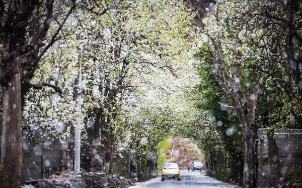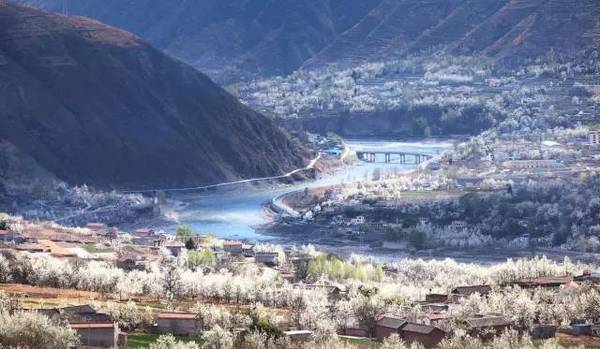 雪白的梨花和粉紅的桃花在碉樓、藏寨和春雪的掩映下,為我們展現出了一幅『梨花淡白柳深青,柳絮飛時花千樹』的絕美畫卷。