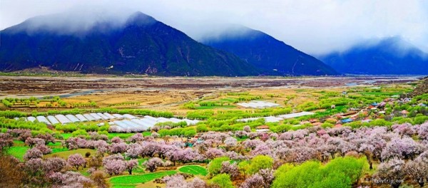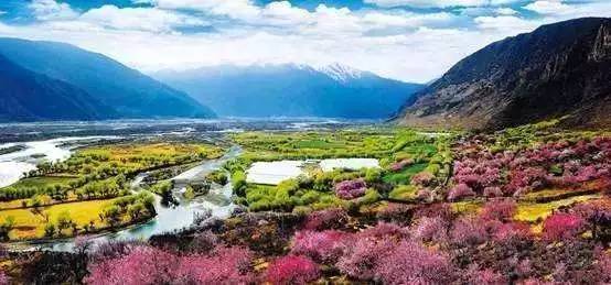 林芝的春天以桃花初綻為訊號,一朵兩朵,一樹又一樹,鋪滿山坡,伸向河谷,蔚然成花海。