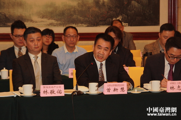 全國台灣同胞投資企業聯合會副會長、太原市台灣同胞投資企業協會會長曾新慧在簽約儀式上發言。