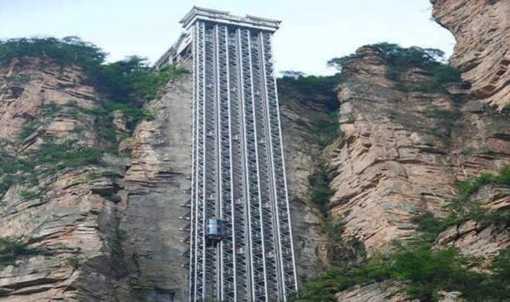 百龍天梯位於張家界武陵源風景名勝區,修建於垂直的懸崖峭壁之上,垂直落差335公尺 ,是世界上最高、運行速度最快、載重量最大的電梯,2015年,張家界百龍天梯以『最高戶外電梯』榮譽而被載入了吉尼斯世界紀錄。百龍天梯總投資1.8億(以人民幣計算,以下同),2004年投入運行,垂直落差335公尺,採用三台雙層全暴露觀光電梯並列分體運行,運行速度5m/秒,從山底到山頂326公尺僅需66秒,從開通至今, 從未發生過任何一起安全事故。