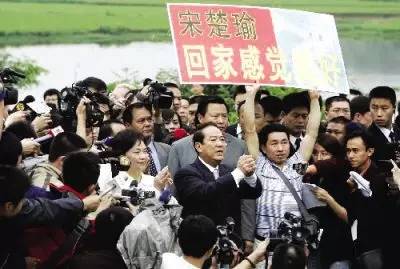 2005年5月9日,時任親民黨主席宋楚瑜向迎接他回鄉的鄉親們拱手致謝。