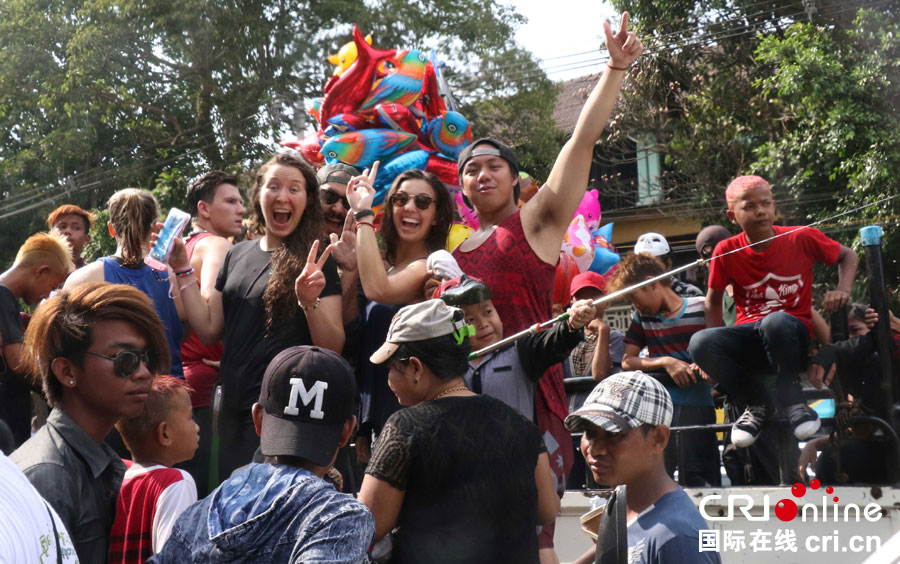馬路上奔跑著各式各樣的敞篷車和皮卡車,車鬥裡是準備投入「潑水大戰」的男男女女以及他們的「武器」─一大桶水,他們隨時準備和擦肩而過的車裡面的人互潑,或是「偷襲」路邊的行人。大家被潑得越多越高興,因為水象徵著吉祥和幸福。