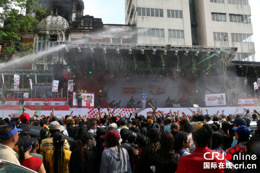 為了慶祝這個盛大的節日,緬甸各地搭建起了獨具特色的潑水台,明星們在台上為大家帶來歌舞表演,民眾在台上用水管向台下的人群和車輛潑水,人們伴隨著音樂搖擺狂歡的同時,還享受著台上潑水帶來的清涼。