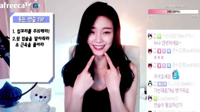 鄭素拉從2017年2月起開始做網路主播,但是有別於其他主播,鄭素拉面向的群體並非萬千宅男,而是志願成為空姐的南韓少女,直播內容也多是傳授面試細節等。憑藉幽默的談吐、得體的妝容與專業知識,短短兩個月觀看鄭素拉直播的人數累計已達70萬4954人。圖為鄭素拉在展示標準微笑。