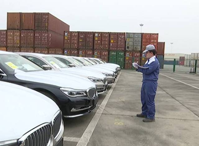正在對進口汽車進行資料統計的工人。