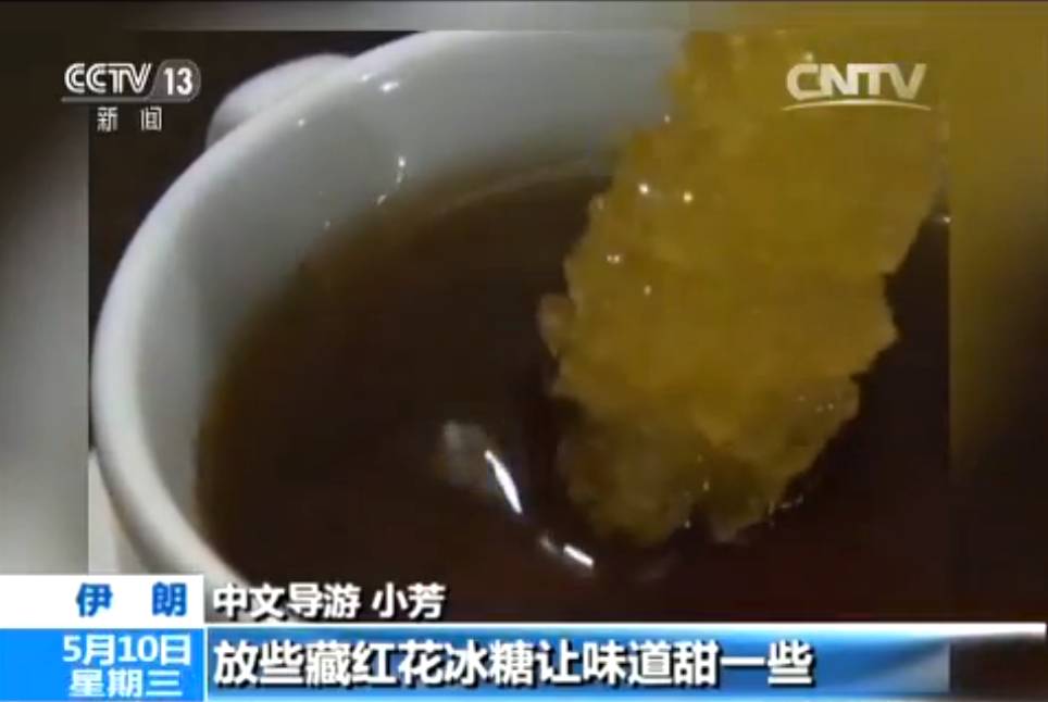 據小芳介紹,波斯語裡也說茶(茶的波斯語發音CHAi),因為茶是通過絲綢之路從大陸被帶到了波斯。現在伊朗人比較喜歡喝紅茶。喝茶時還要放塊伊朗特產的藏紅花冰糖,讓紅茶味道更甜一些。