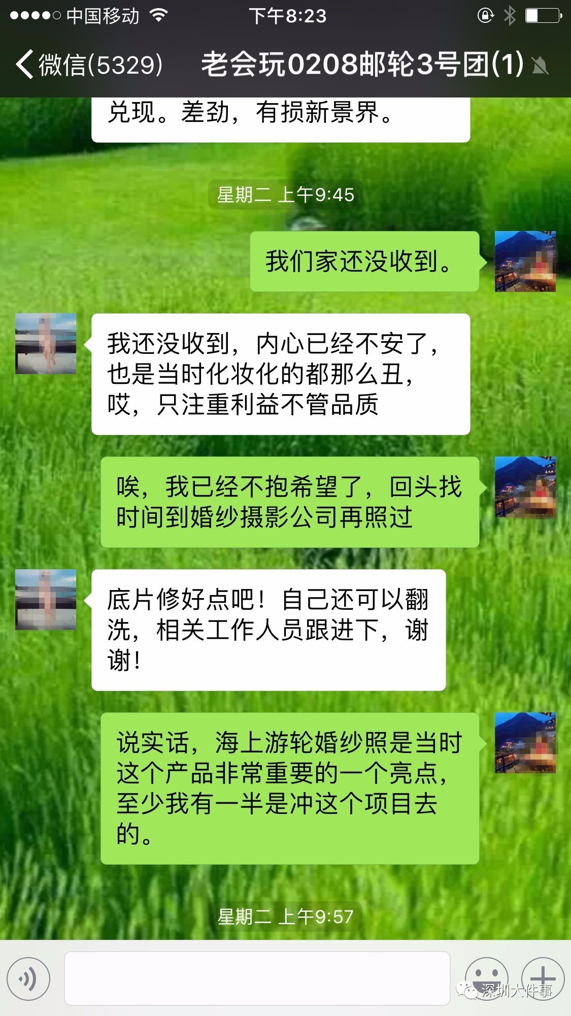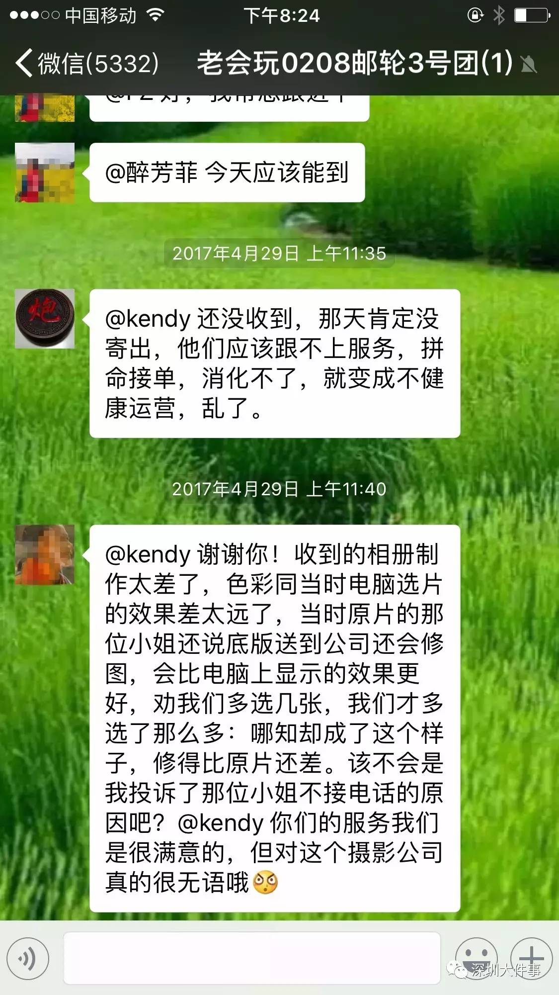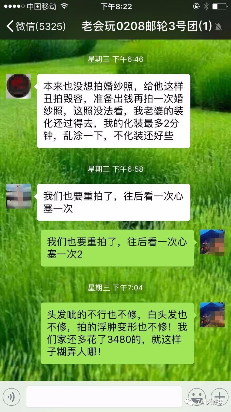 見幾位遊客在群裡討論相冊的事,另一位女士說,「我還沒收到,內心已經不安了,當時化妝化的都那麼醜。」