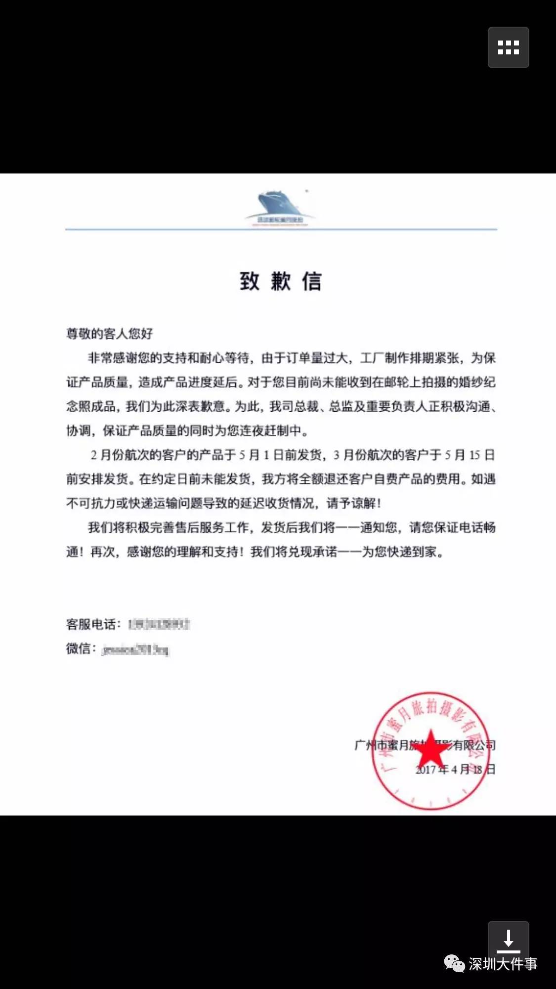 蜜月旅拍解釋,由於訂單量過大,工廠製作排期緊張,為保證產品品質,造成產品進度延後。