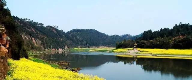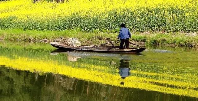 特別是菜花時節,這里兩岸開滿了黃燦燦的油菜花,湖面又平靜的如一面鏡子,有點兒陽朔的感覺。