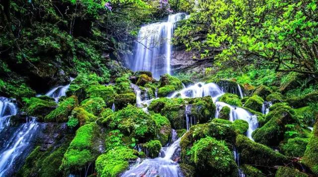 瓦屋山不僅有絕美山巒,夏日這裡也是避暑納涼的好地方。走進山間,綠油油的青苔和潺潺流水,午後再飄起雲霧,好像誤入仙境一般。
