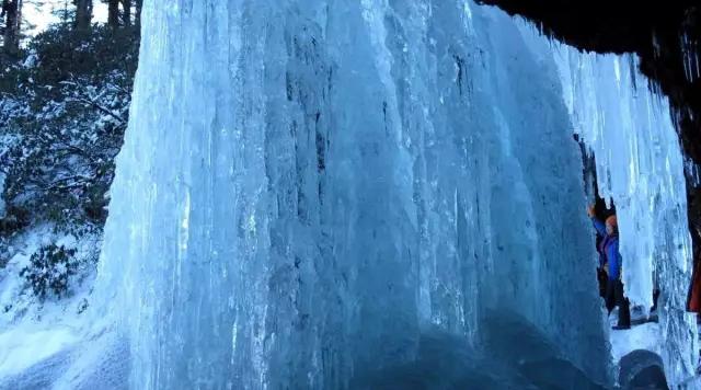 瓦屋山的蘭溪瀑布,在冬天的時候已經結成冰瀑了,爬山看水偶遇國寶,這就是瓦屋山!