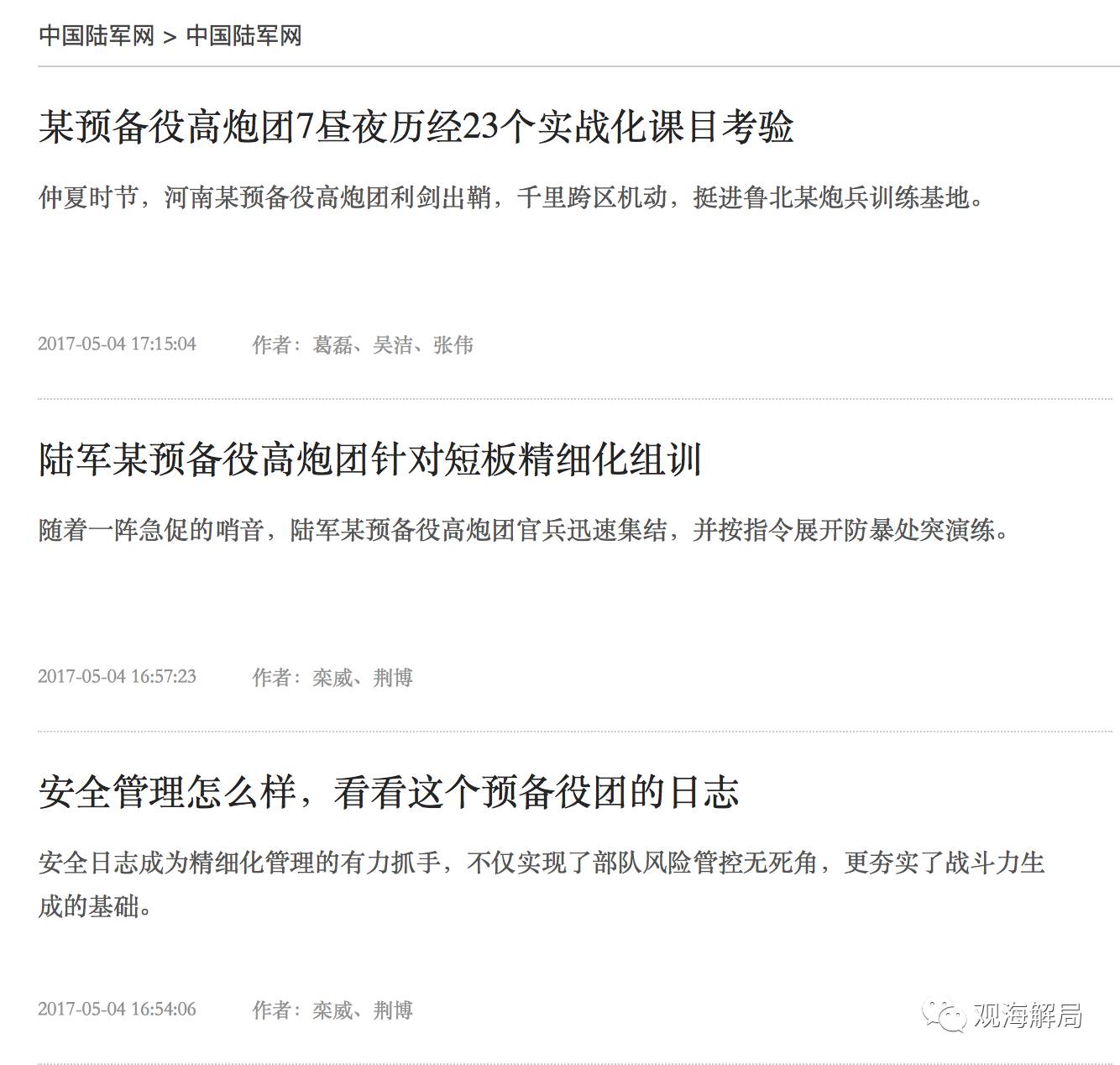 從中國陸軍的官方微信公眾號資訊來看,「海防、預備役、試驗部隊是中國大陸人民解放軍的重要組成部分,肩負著建設祖國、護衛祖國的神聖使命。踏著改革強軍的鼓點,伴隨建強陸軍的步伐,在廣闊發展前景下,將走出新的一片天地。」