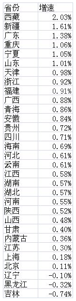 表2:2016年各省份常住人口增速