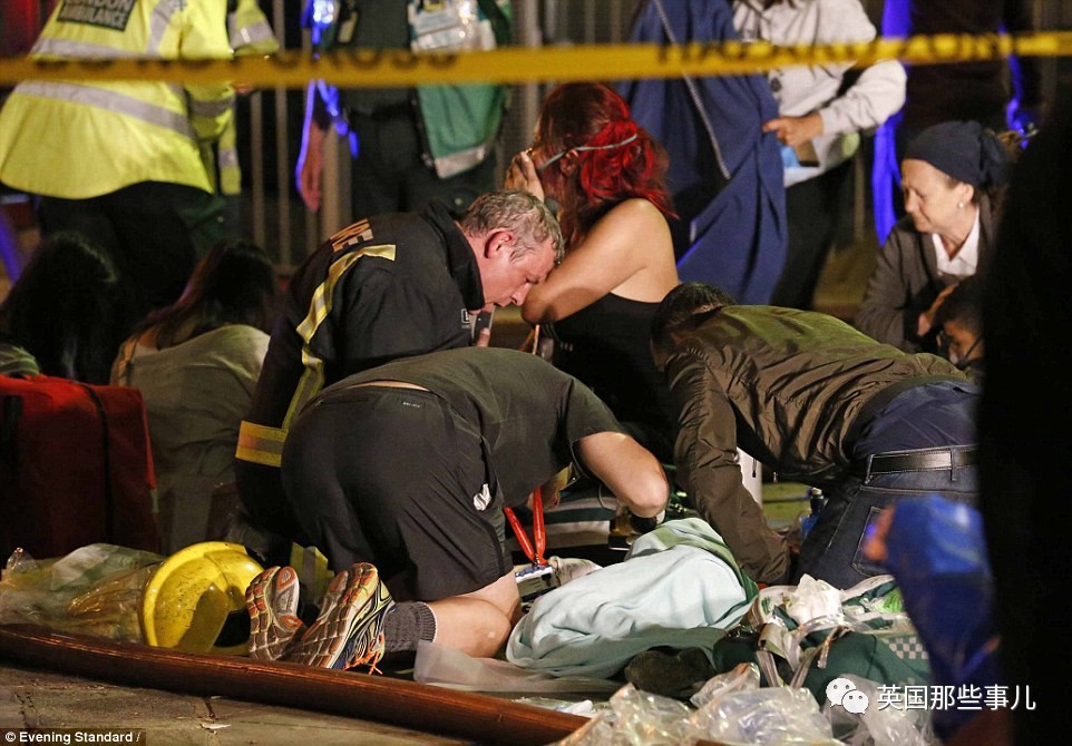 倫敦的救護車隊在1點29分也趕到現場,幫助官兵們為救出來的住戶救治....