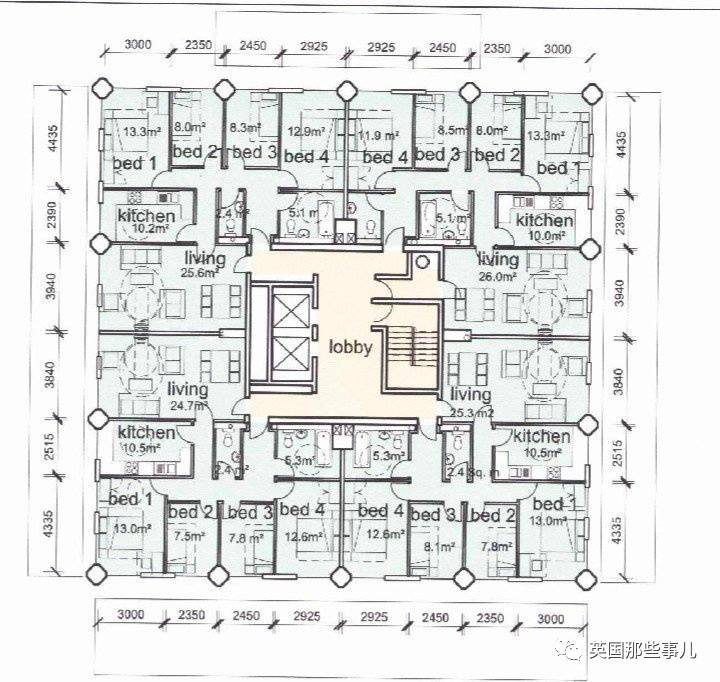 除了底部新改造的幾套公寓以外,往上都是每層4戶,每戶4個臥室,4戶共用一個樓梯,總共也就只有一個樓梯。
