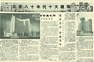 2000年9月,北京日報報業集團、北京電視台聯合市規委等主辦『北京九十年代十大建築評選』。這次評選共收到63.5萬張選票,遠超該年電影百花獎的選票數。最終選出了中央電視塔等1990年代『十大』。