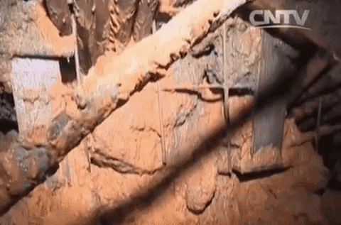 隧道中含水量豐富的泥沙。