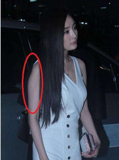 近日,楊冪在微博電影之夜上的一張照片暴露了她隱藏許久的缺點─胳膊粗。網友表示:「只知道楊冪腿細胸大,不知道她的胳膊原來這麼粗壯。」相比於楊冪的腰和腿,她的胳膊的確不細。