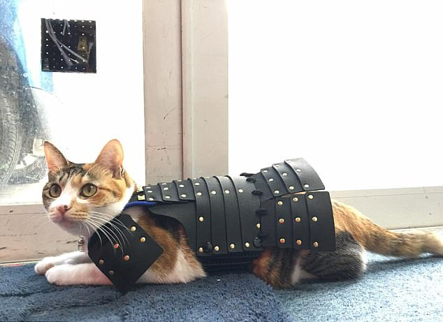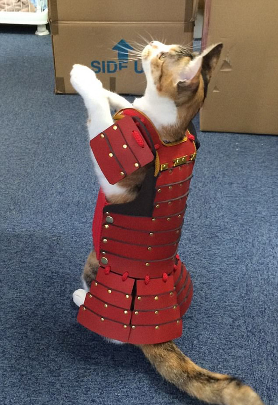 買家們可以選擇標準尺寸,或根據寵物身材提出尺寸要求。全套服裝約為129美元(約合人民幣876元)到150美元(約合人民幣1020元)。該公司稱,這款寵物服大受消費者歡迎,他們也開始為成年的寵物貓狗提供武士服裝。