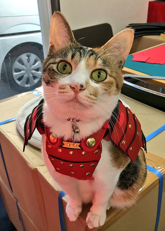 日本福岡市一家公司為寵物貓狗量身定做寵物服。與眾不同的是,這家公司訂做的寵物服走的是「武士風」路線,使寵物貓狗們看上去威風凜凜。