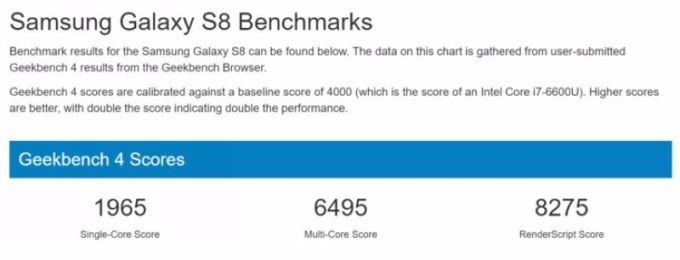 丟入 GeekBench 性能工具檢測之後,Exynos 8895 單核成績為 1965、多核成績為 6495,效能與高通驍龍 835 相去不遠。