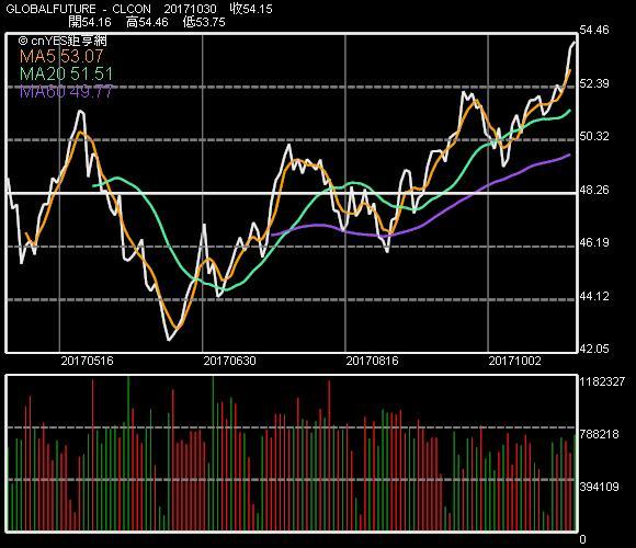 紐約商品交易所西德州中質原油 12 月期約上漲 23 美分或 0.4%,至每桶 54.38 美元,本月漲幅約為 4.7%。9 月底到期的 11 月的合約價格攀升 5.2%。