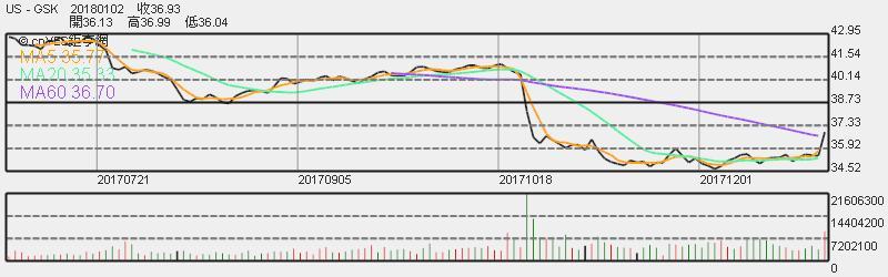 GSK 股價週二 (2 日) 上漲 4.10% 來到 36.93 美元。
