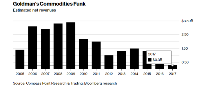 由於關閉了持續虧損的天然氣交易,高盛 2017 年最後一季的商品獲利表現優於前兩季,但儘管如此該單位依舊因削減風險而表現黯淡。