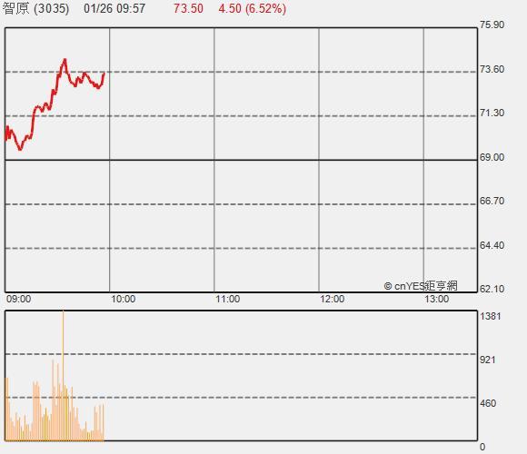 IC 設計服務大廠智原 (3035-TW) 去年特殊應用晶片 (ASIC) 和委託設計 (NRE) 市場接單表現亮眼,在物聯網 (IoT) 產業持續蓬勃下,市場看好今年仍大有可為,早盤股價飆漲超過 7%,而開盤才半小時認購權證成交量就已衝上 3000 萬元,成為前 10 大認購熱門標的。