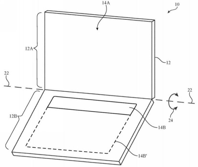 《ZDNet》報導,據美國專利局的最新公布,在蘋果 26 項的新專利中,蘋果 (AAPL) 設計了一款與 MacBook Pro 相似的「雙螢幕」筆電,該電腦完全挪除了鍵盤設計。