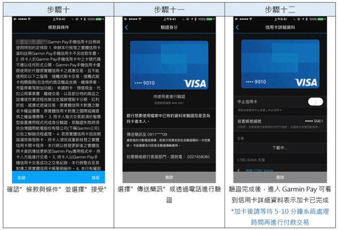 Garmin Pay 支援 Visa、Mastercard 信用卡,首波共有中國信託、玉山、台北富邦、台新、國泰世華、聯邦等 6 家合作銀行的信用卡可以支援。