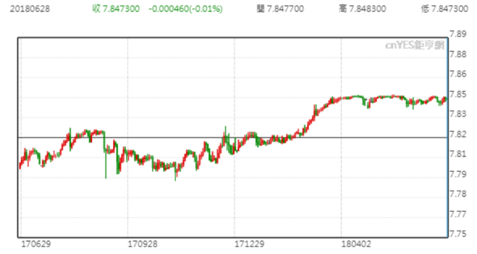 港匯最新報 7.8473 兌 1 美元,或 - 0.01%