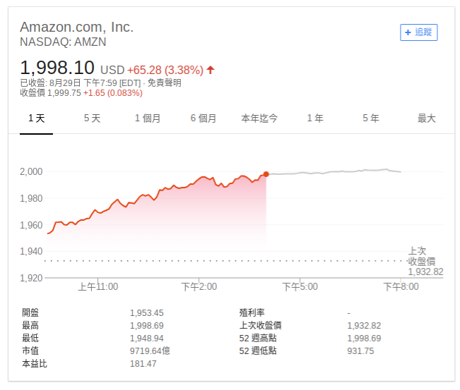 週三超過 3% 的漲幅讓亞馬遜市值再添約莫 320 億美元,目前距離 27 天前蘋果跨過的兆元里程碑只差 300 億美元不到了。